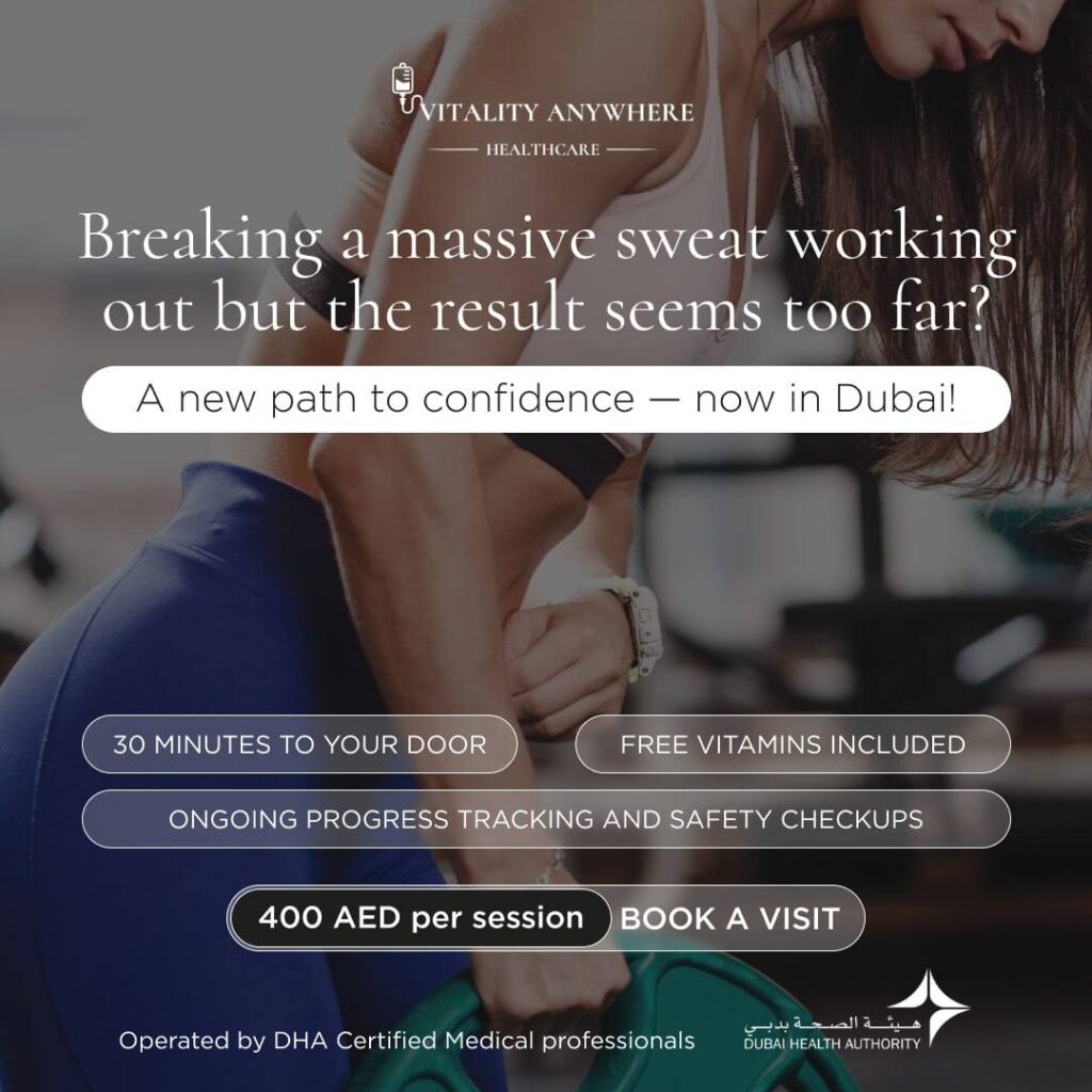 A Bhoj2025-09-21Trustindex verifies that the original source of the review is Google. Nazia was very professional, polite and good at her work Abdullah Al Mazmi2025-09-18Trustindex verifies that the original source of the review is Google. Nazia is amazing she makes us comfortable and very recommended!! Its my second session and seems on going as results really positive Miss AL Mazmi2025-09-16Trustindex verifies that the original source of the review is Google. I had 2 sessions for hormone and gluta anti oxidant with vitality clinic. For the past two weeks there is a noticeable difference in my health. I used to suffer from anger issues, mood swing, getting emotional quickly at any moment, after the drip i feel i became more calm and relaxed. Even my sleep patterns improved. I really recommend their treatments. Worth 5 stars Elie Jarrouj2025-08-27Trustindex verifies that the original source of the review is Google. Very smooth needle insertion, no pain feeling, professional nurse. Would definitely request it again! amal khan2025-08-22Trustindex verifies that the original source of the review is Google. Had an amazing experience with vitality anywhere. Professional service, punctual, hygienic and good understanding of what they are treating the patient withand amazing results. Will continue taking services from them further. Thank you ❤️ Angela Morales2025-08-22Trustindex verifies that the original source of the review is Google. This is my 3rd session of my skin glow IV Therapy. The service was very helpful and comfortable with the treatment especially with the professional and expert nurse she is very knowledgeable and understanding the job. I really feel the significant difference in my body and weight. TRESVALLES EMY2025-08-21Trustindex verifies that the original source of the review is Google. I am happy with the service and care. She's a cool and relaxed nurse and the session is fast lasted only 10mins. Shes good in handling .Ill request her assistance in the next session.. Luzardi Fischer2025-08-17Trustindex verifies that the original source of the review is Google. Brilliant service! Friendly and knowledgeable staff. Tugce Susu2025-08-13Trustindex verifies that the original source of the review is Google. Vitality Anywhere came to my home for a check-up, and Dr. Belal gave me an IV treatment. He was so professional, kind, and made me feel completely at ease. I felt an instant boost right after such an amazing and convenient service! 🌟💧 bechari soukayna2025-08-11Trustindex verifies that the original source of the review is Google. Perfect I like it at his service ♥️